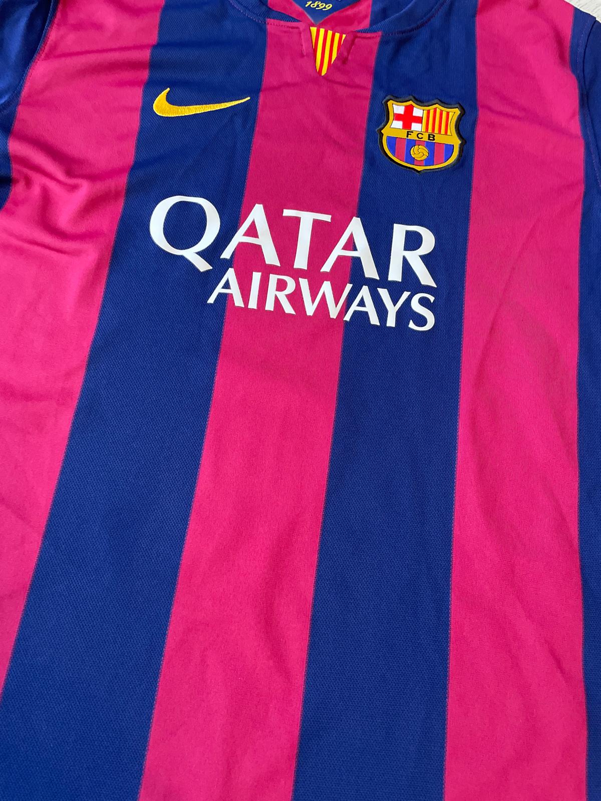 Description: This vintage Barcelona home shirt was worn during their 2014/15 campaign at Camp Nou. During this season, they were managed by Luis Enrique who led them to their second treble, winning the Champions League, La Liga and Copa Del Rey titles. This classic Barcelona shirt was manufactured by Nike and worn by the likes of Lionel Messi, Luis Suarez, Neymar jr., Xavi, Iniesta, Sergio Busquets and Jordi Alba. This classic Barcelona shirt is a great opportunity to own a stunning vintage piece of Blaugrana, Catalan and Spanish football shirt history.